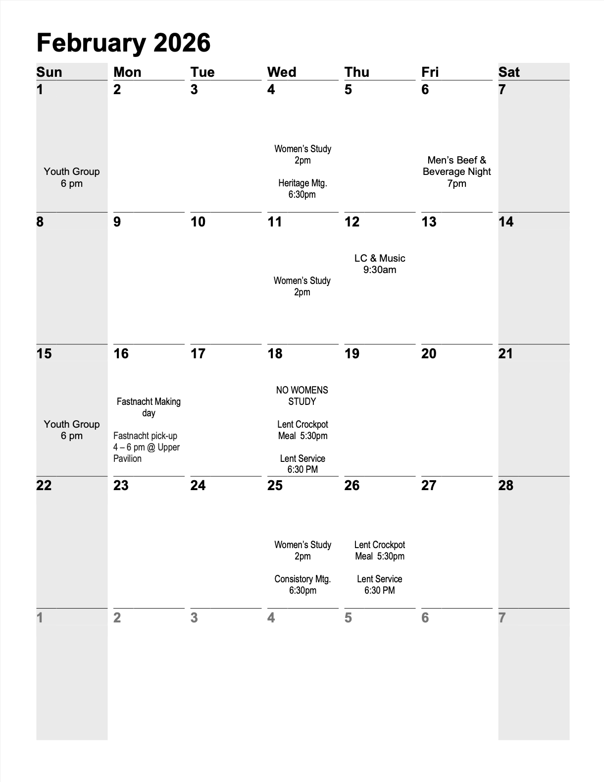 Come, join us on Sundays at 10am, where the love of the Scriptures and the truth of the Gospel are our joy and our strength.