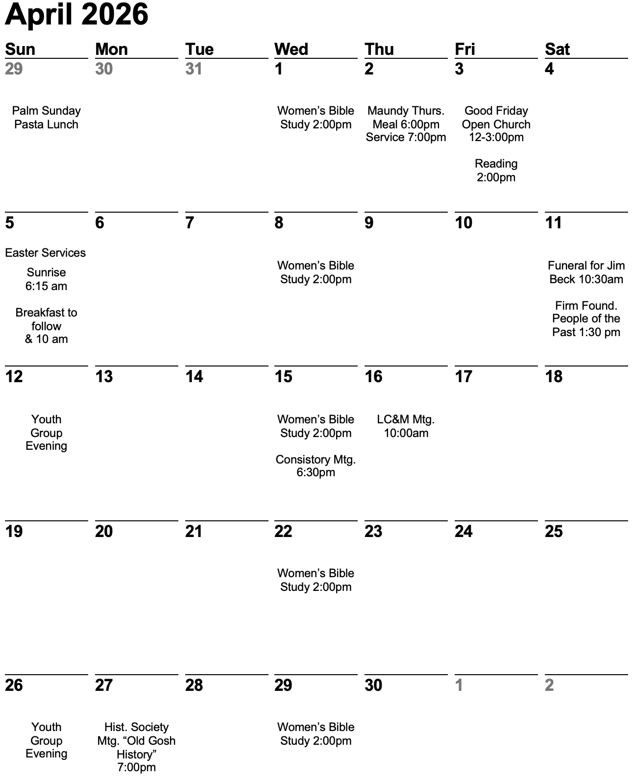 Old Goshenhoppen Reformed Church began with a first sermon and Lord’s Supper service on October 12, 1727, eventually being recognized on November 12, 1730, as a New World church plant.